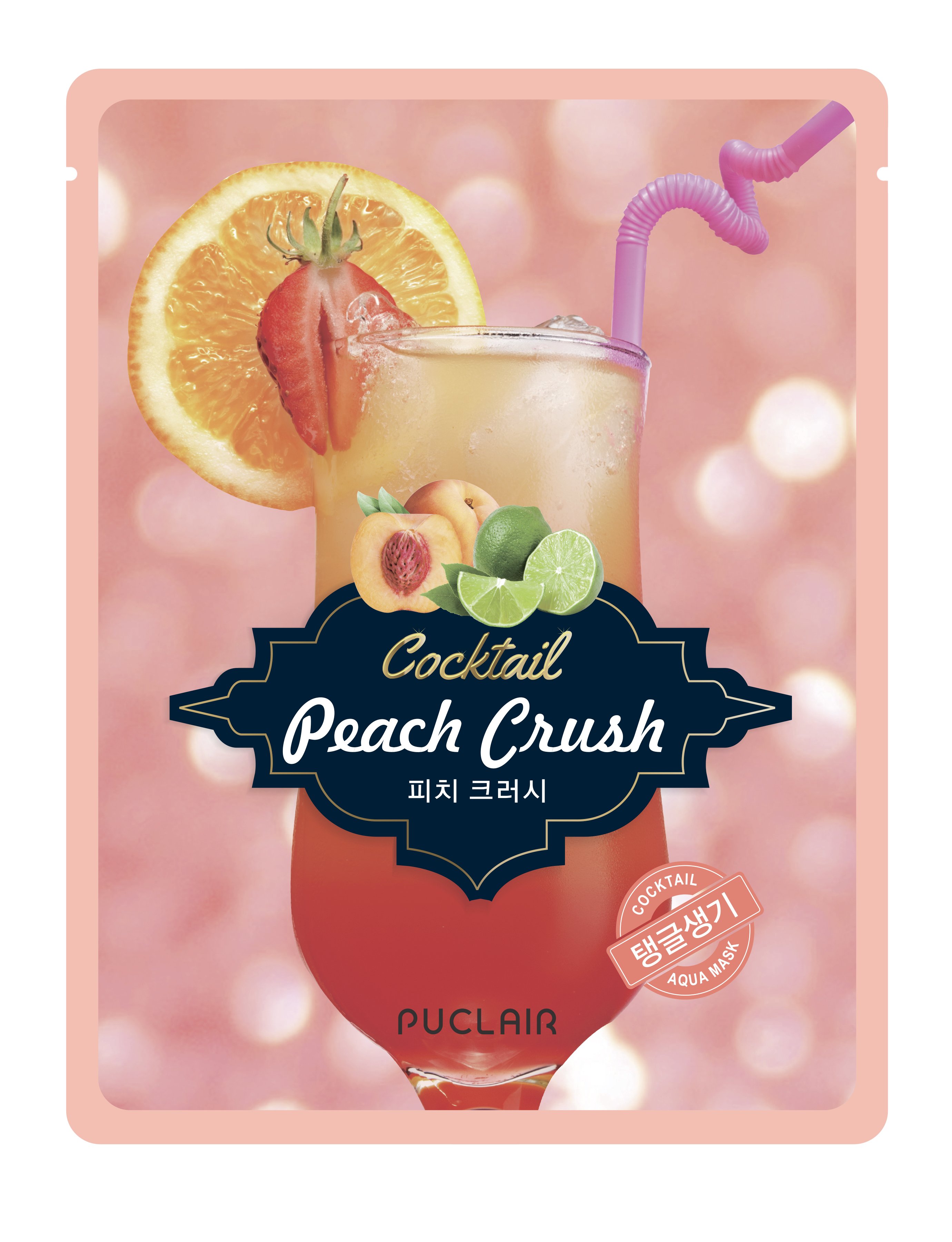 1️⃣ PUCLAIR AQUA COCKTAIL PEACH CRUSH: Chiết xuất từ đào và chanh tươi, giàu vitamin C cũng như các dưỡng chất cần thiết cho da, giúp làm mờ các vết thâm trên da, làm đều màu da, dưỡng da trắng sáng đồng thời thu nhỏ lỗ chân lông hiệu quả