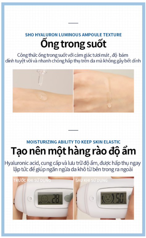 Nồng độ Axit Hyaluronic cao , cung cấp độ ẩm cho da