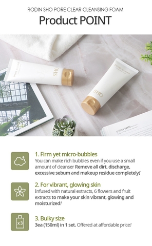 Sữa rửa mặt SHO Pore Clear Cleansing Foam chứa thành phần được chiết xuất Quả Cơm cháy đen, Quả Nam việt quất và Hoa anh thảo giúp da kiểm soát được lượng dầu thừa đồng thời sát khuẩn nhẹ làm se mụn nhanh, rửa sạch những bụi bẩn trên danh, và ngăn ngừa mụn mới tái phát. Se khít lỗ chân lông, tăng sinh Collagen giúp da săn chắc, làm sáng da.